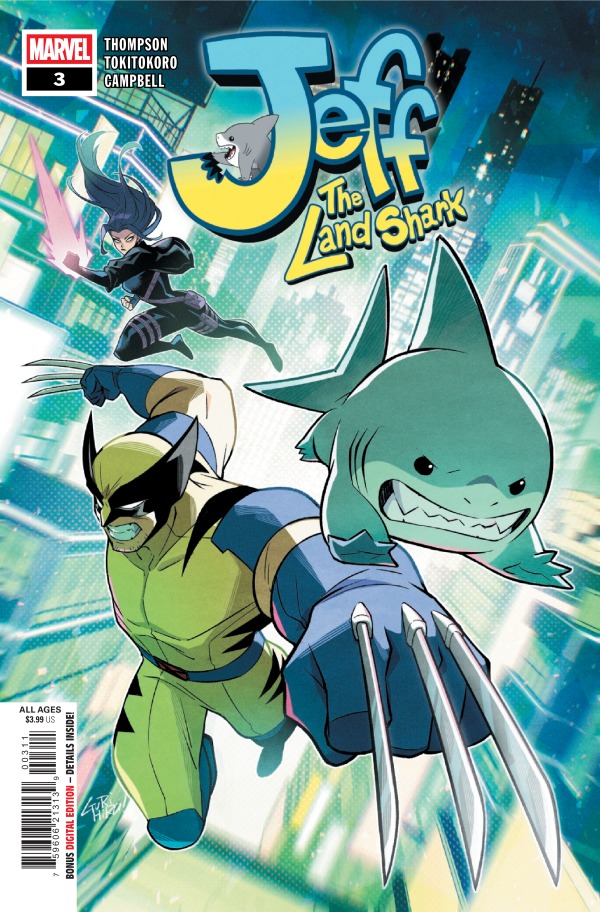 So Jeff The Land Shark is a limited 5-issue series written by Kelly Thompson (who actually created Jeff back in West Coast Avengers) and drawn by the fantastic Tokitokoro. First of all, Kelly wrote my favorite run of Captain Marvel and I’m obsessed with Absolute Wonder Woman. I also love Tokitokoro’s manga-style art, it fits perfectly with Jeff’s chaotic little shark energy.
